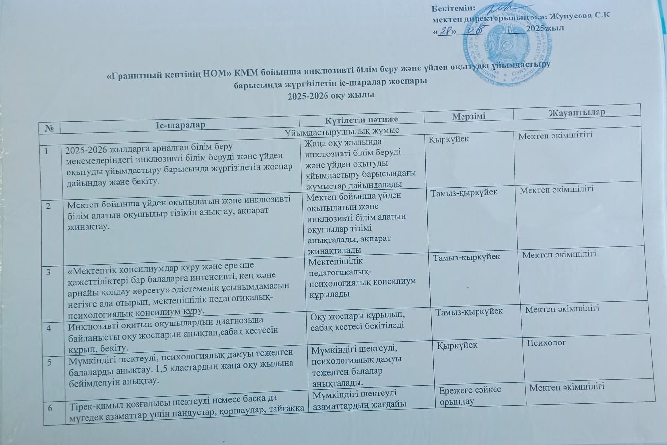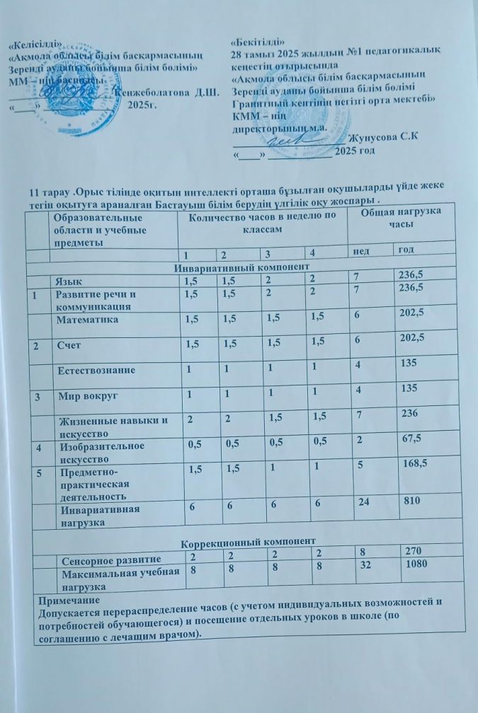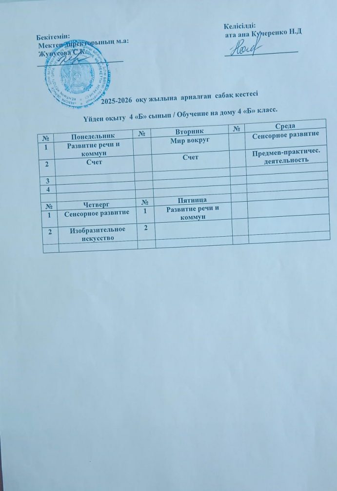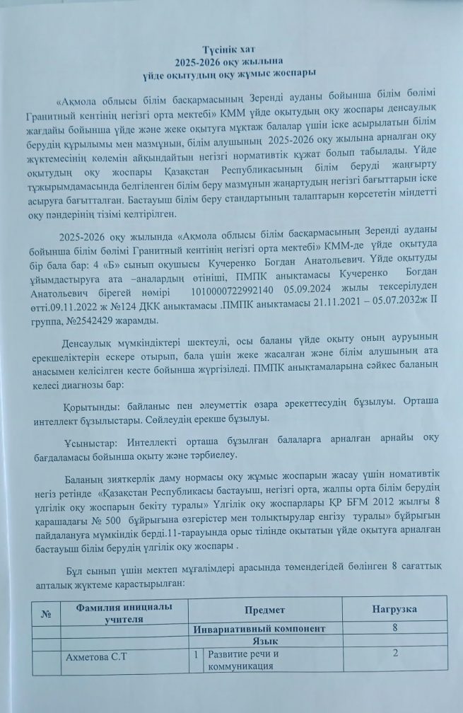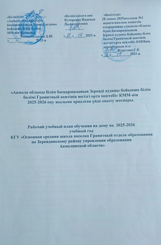 Үйден оқыту оқу жоспары 2025-2026 оқу жылы