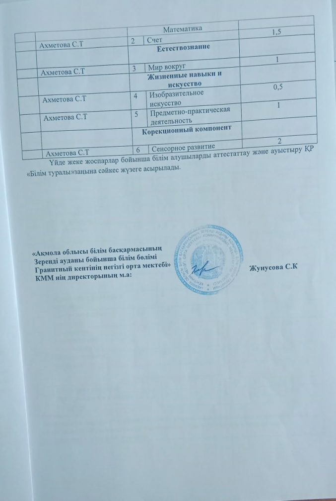Коммунальное государственное учреждение «Основная средняя школа поселка Гранитный отдела образования по Зерендинскому району управления образования Акмолинской области»