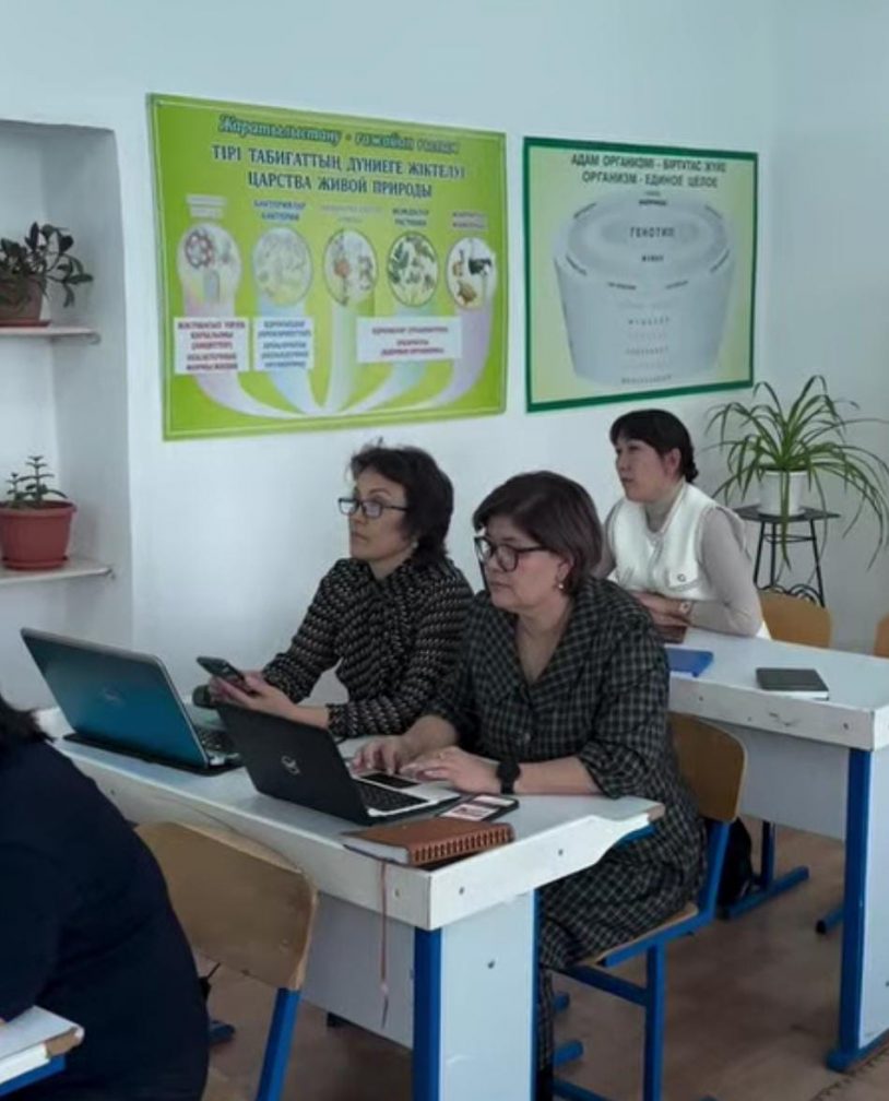 ЖИ бағдарламасының жоспарына сәйкес "ЖИ және оны сабақта қолдану" тақырыбында ұстаздармен практикалық сабақ өткізілді.